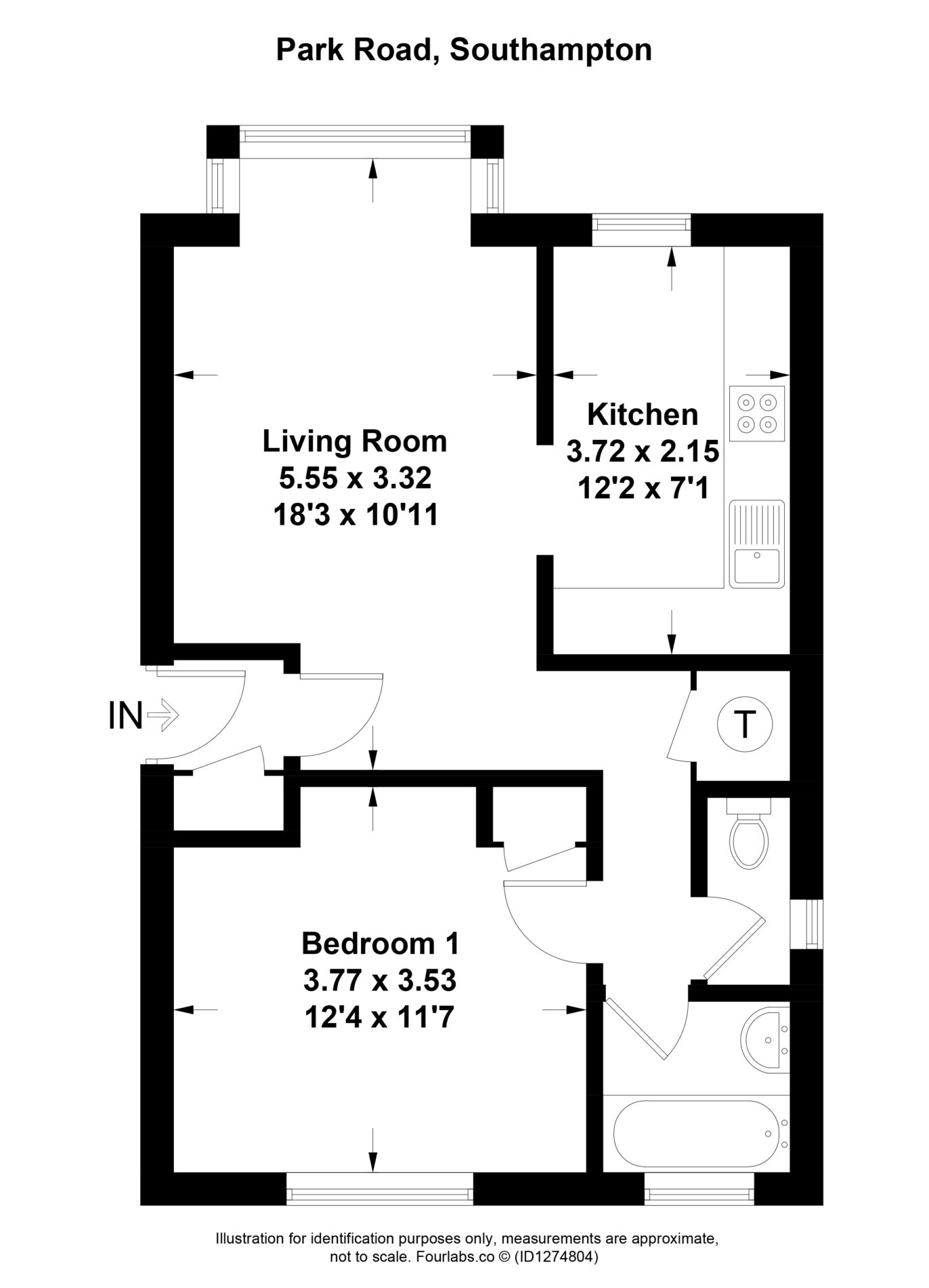 • 1 bedroom first floor apartment